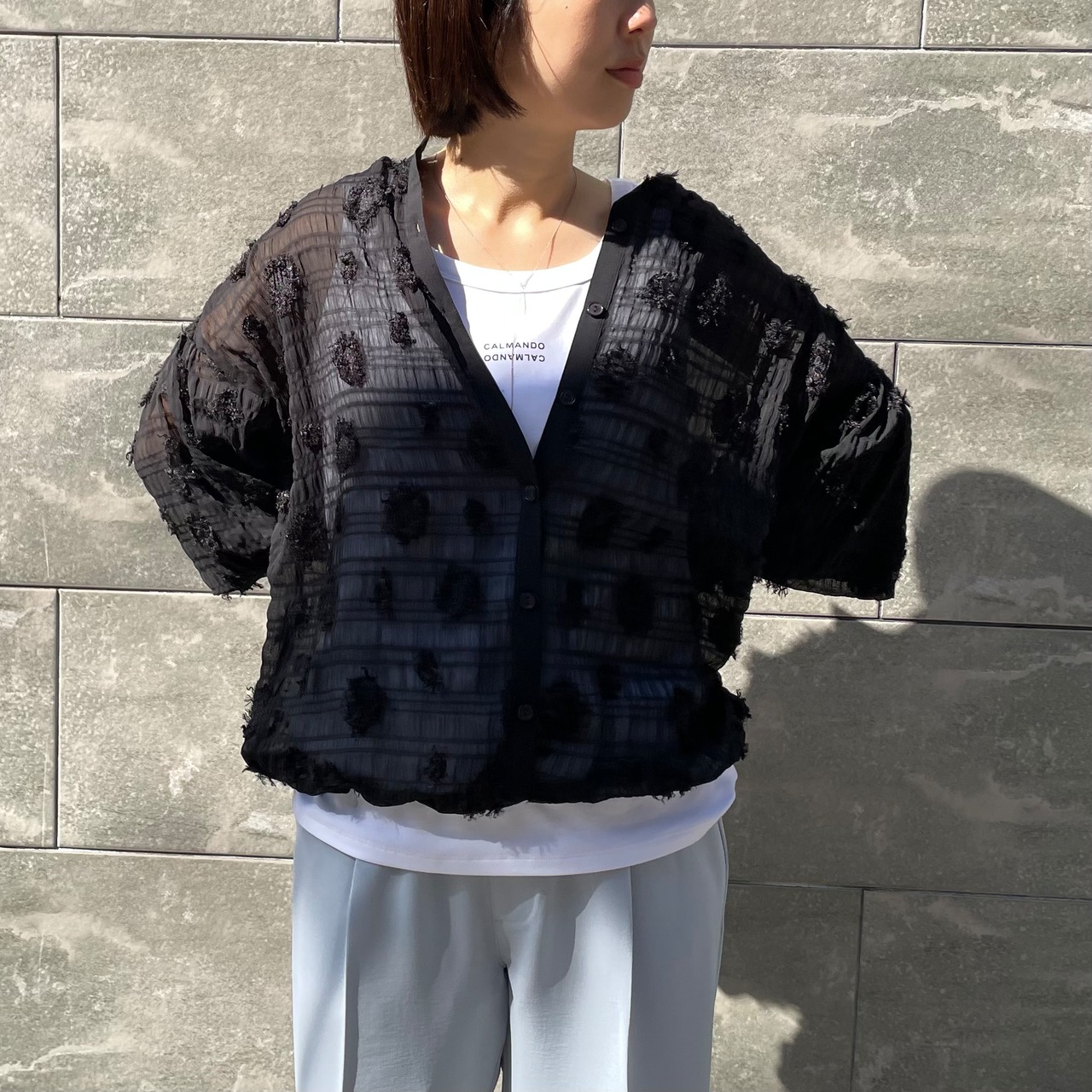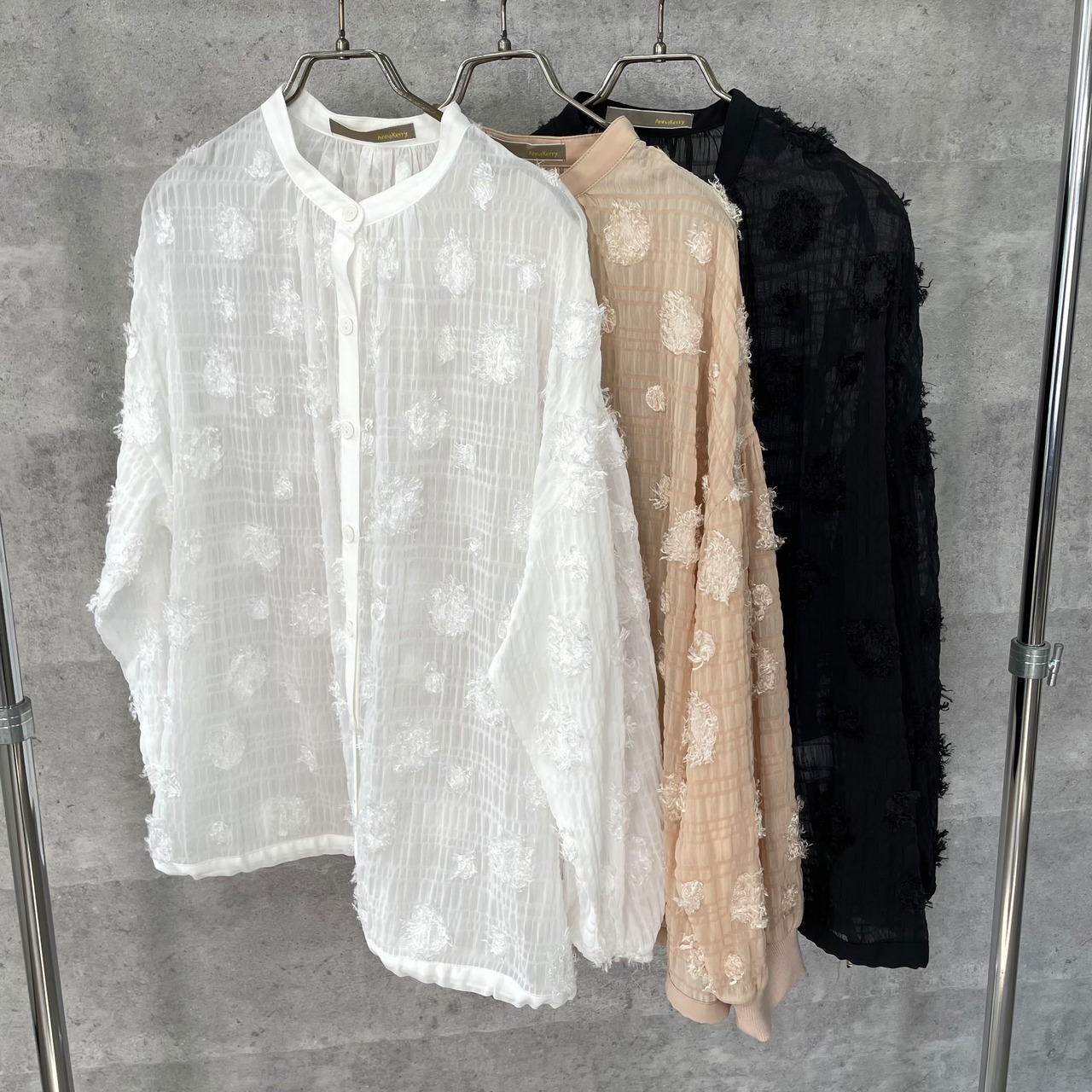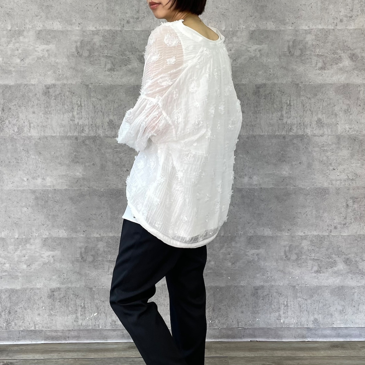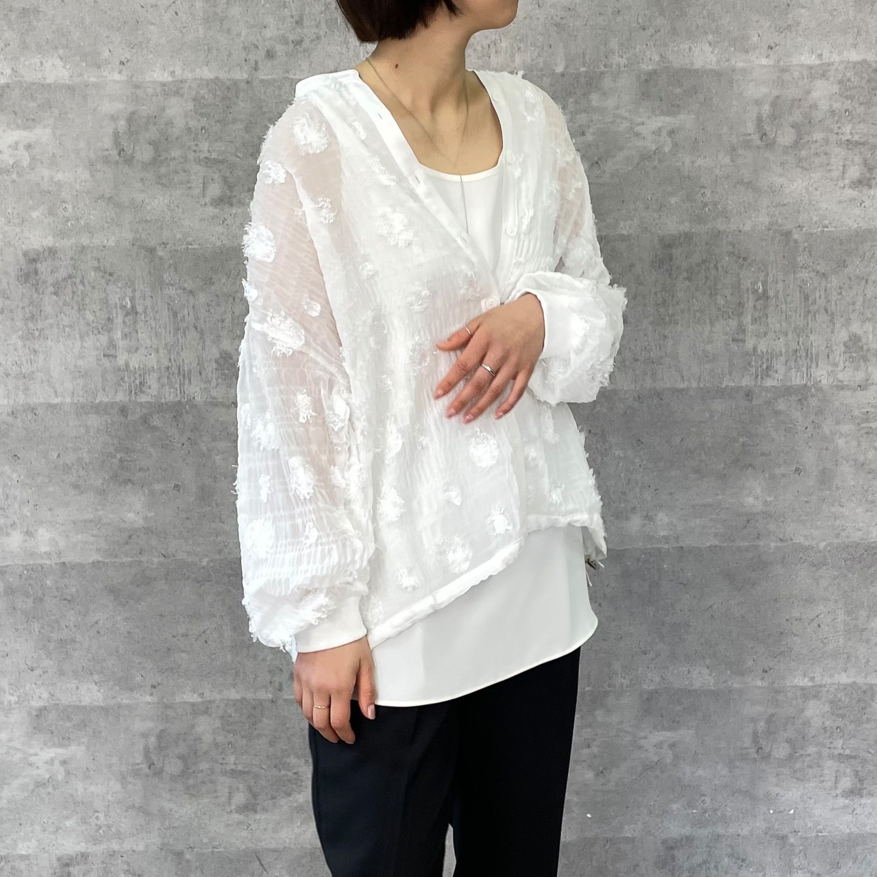 ドット柄のシアージャガード生地のブラウスです