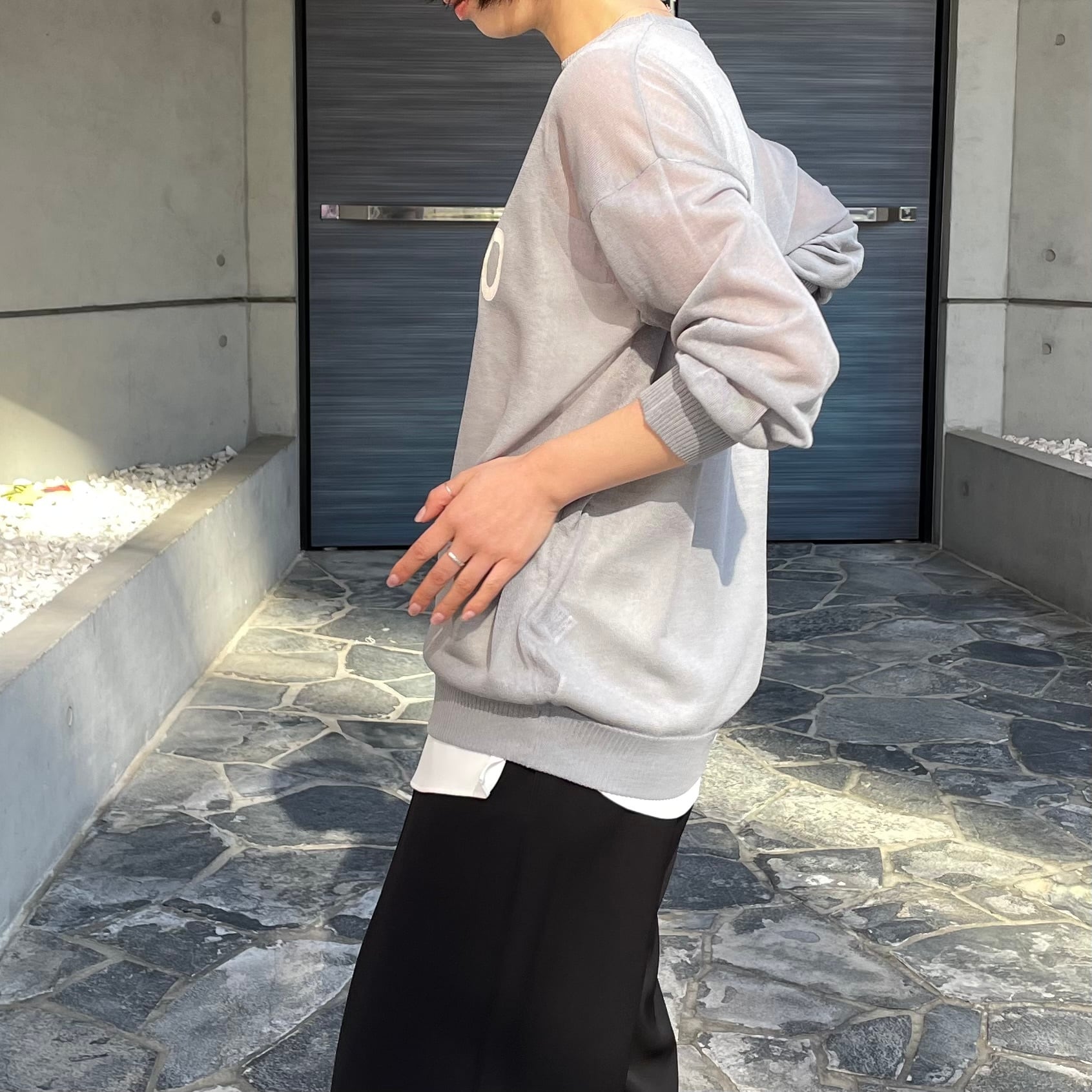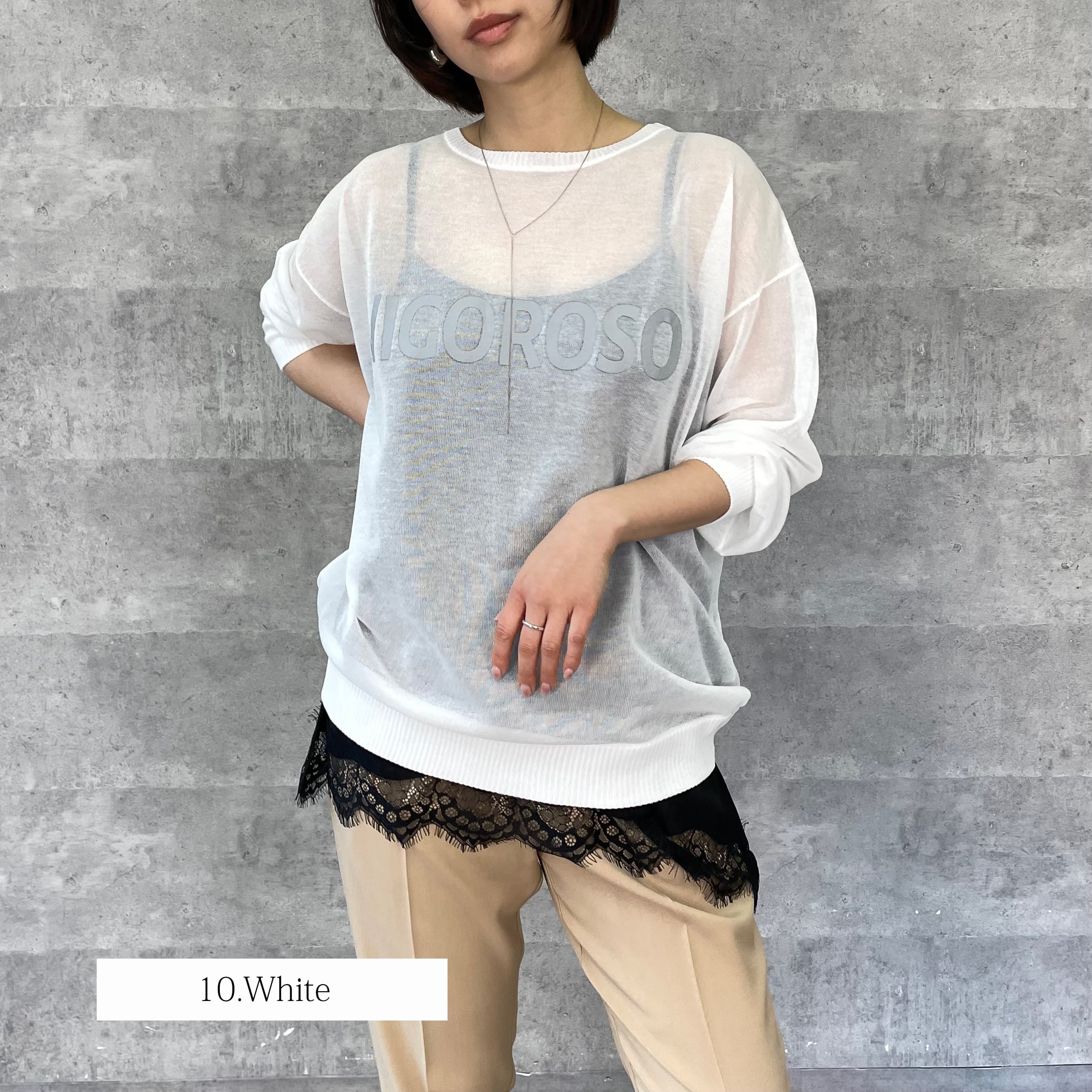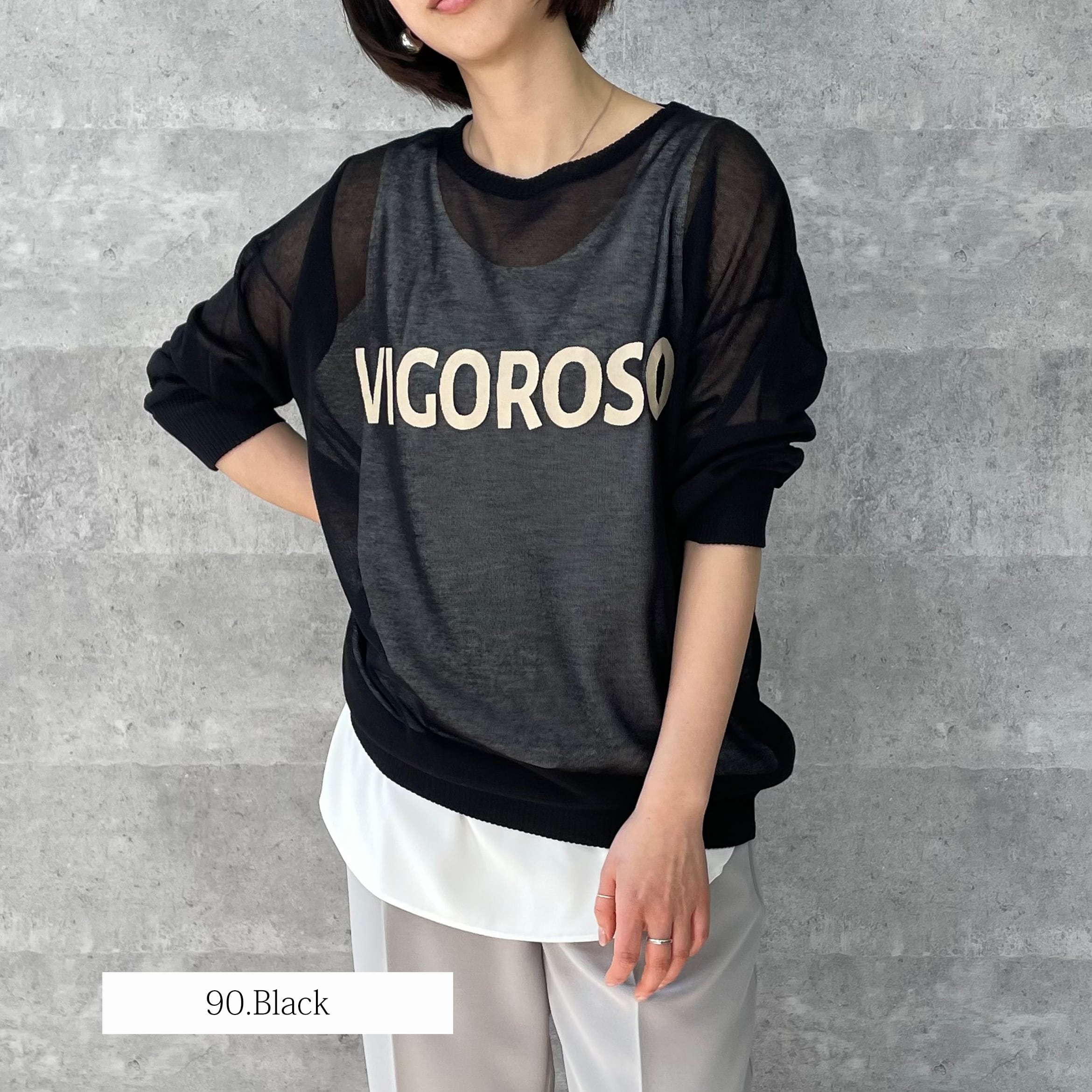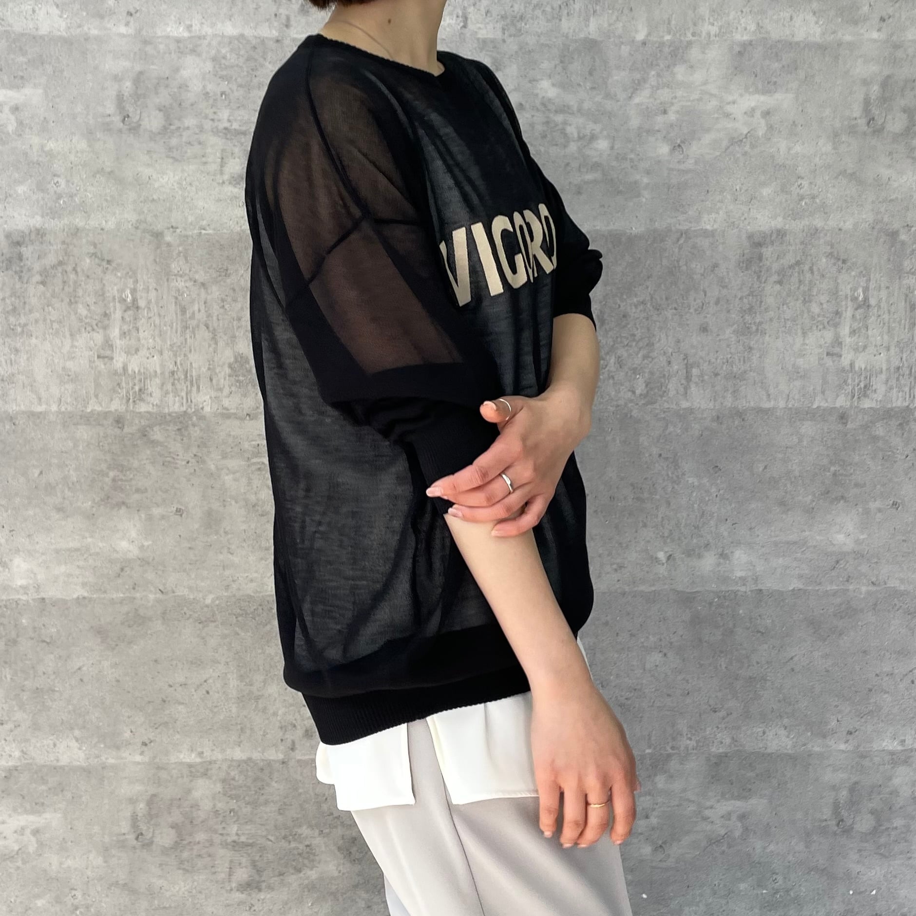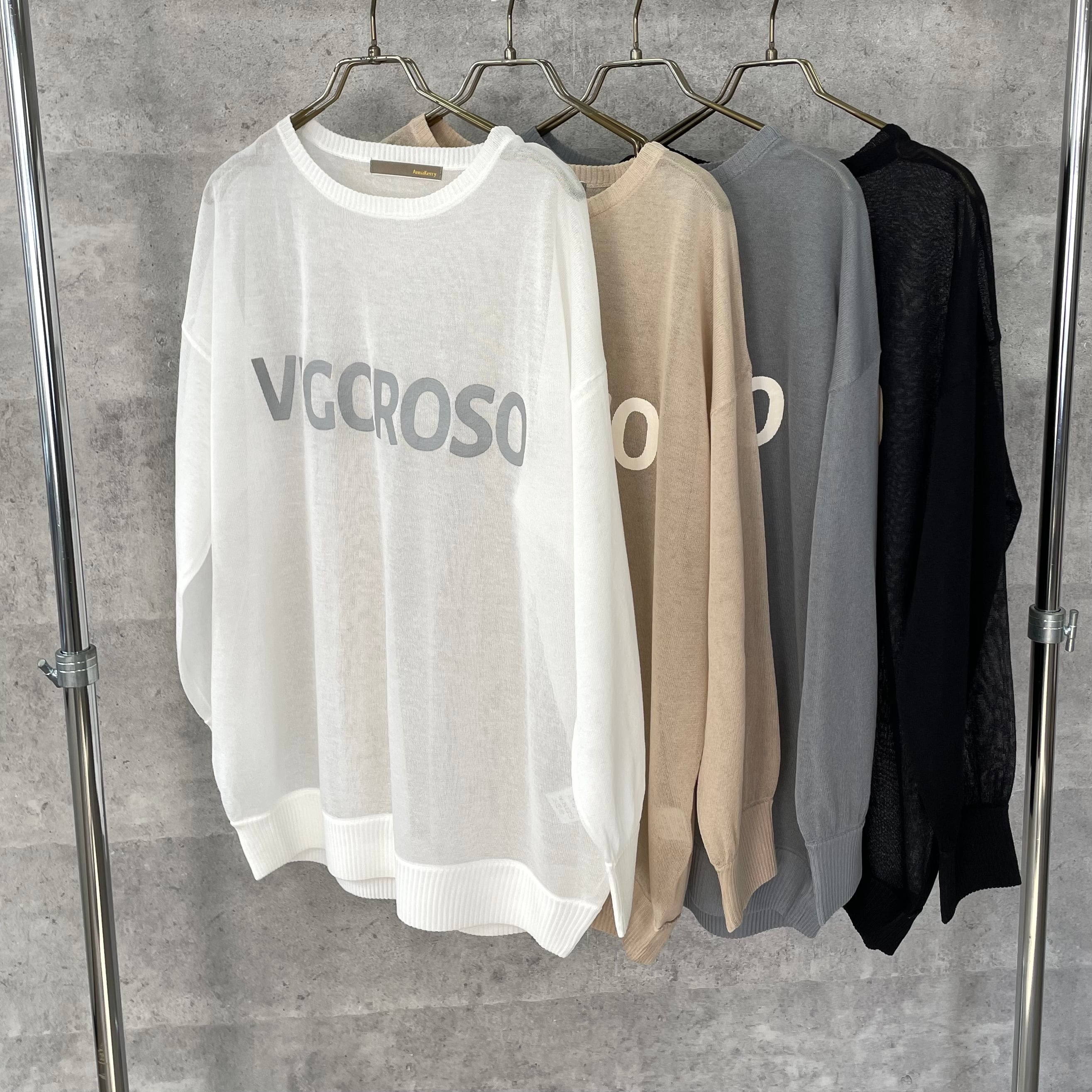 シアー素材のロゴ入りニット