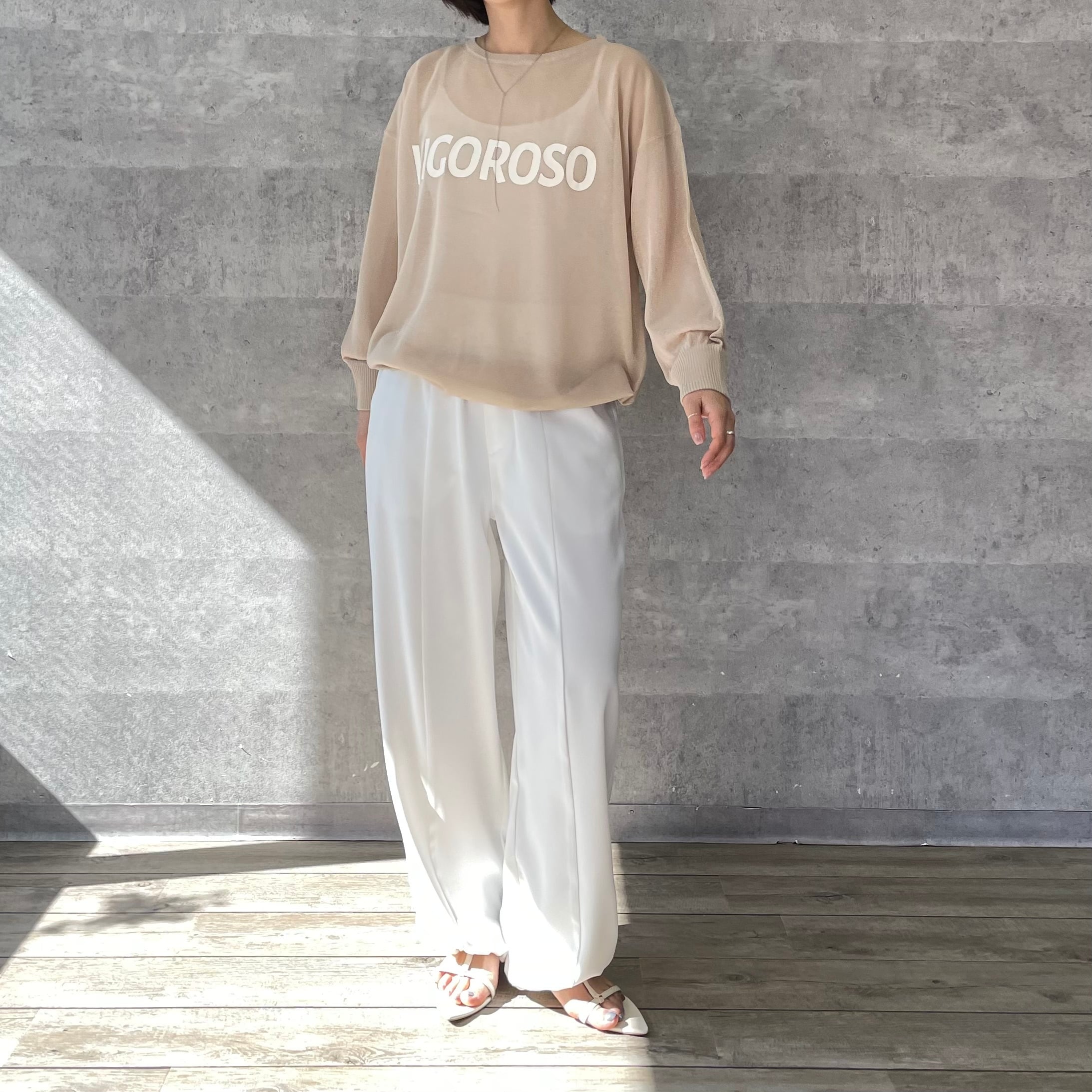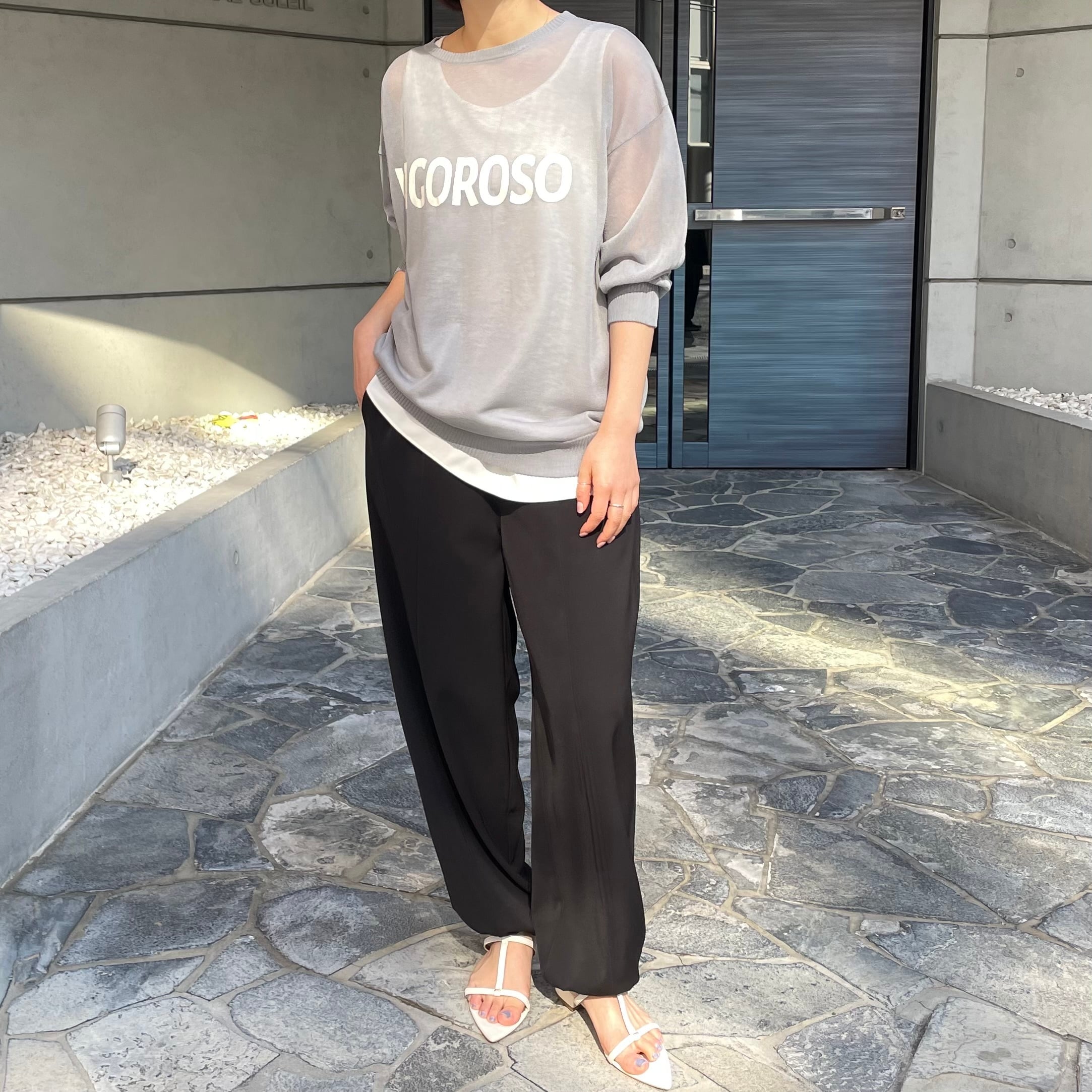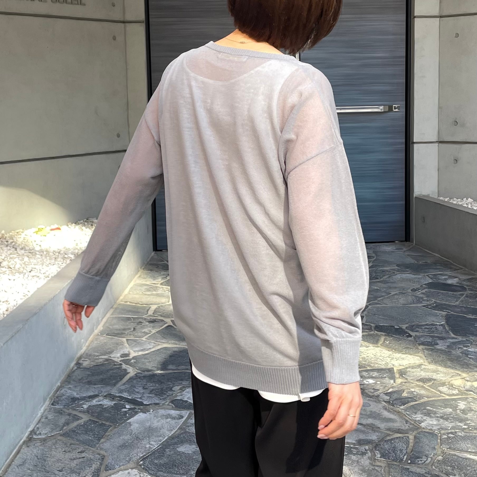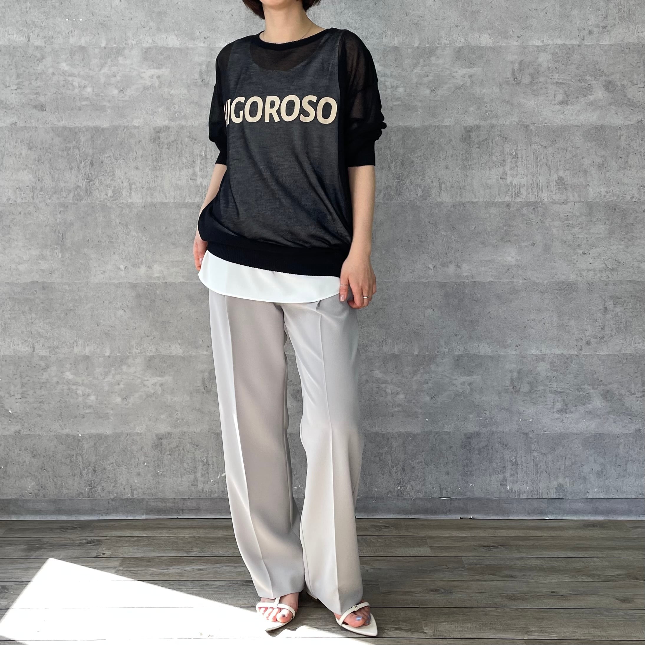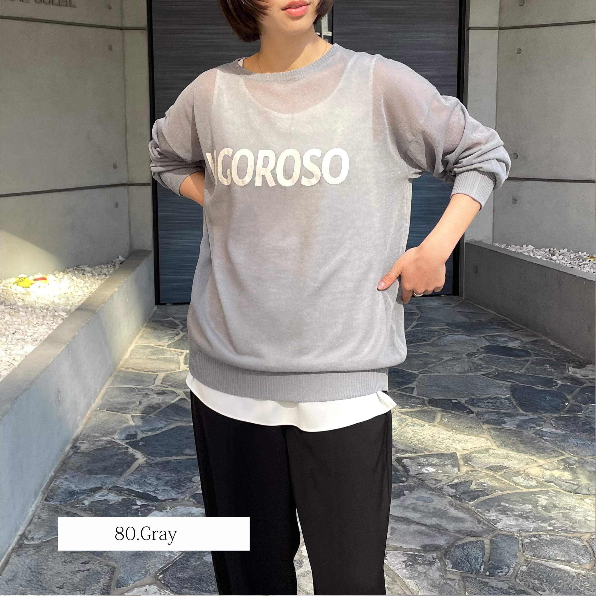 シアー素材のロゴ入りニット