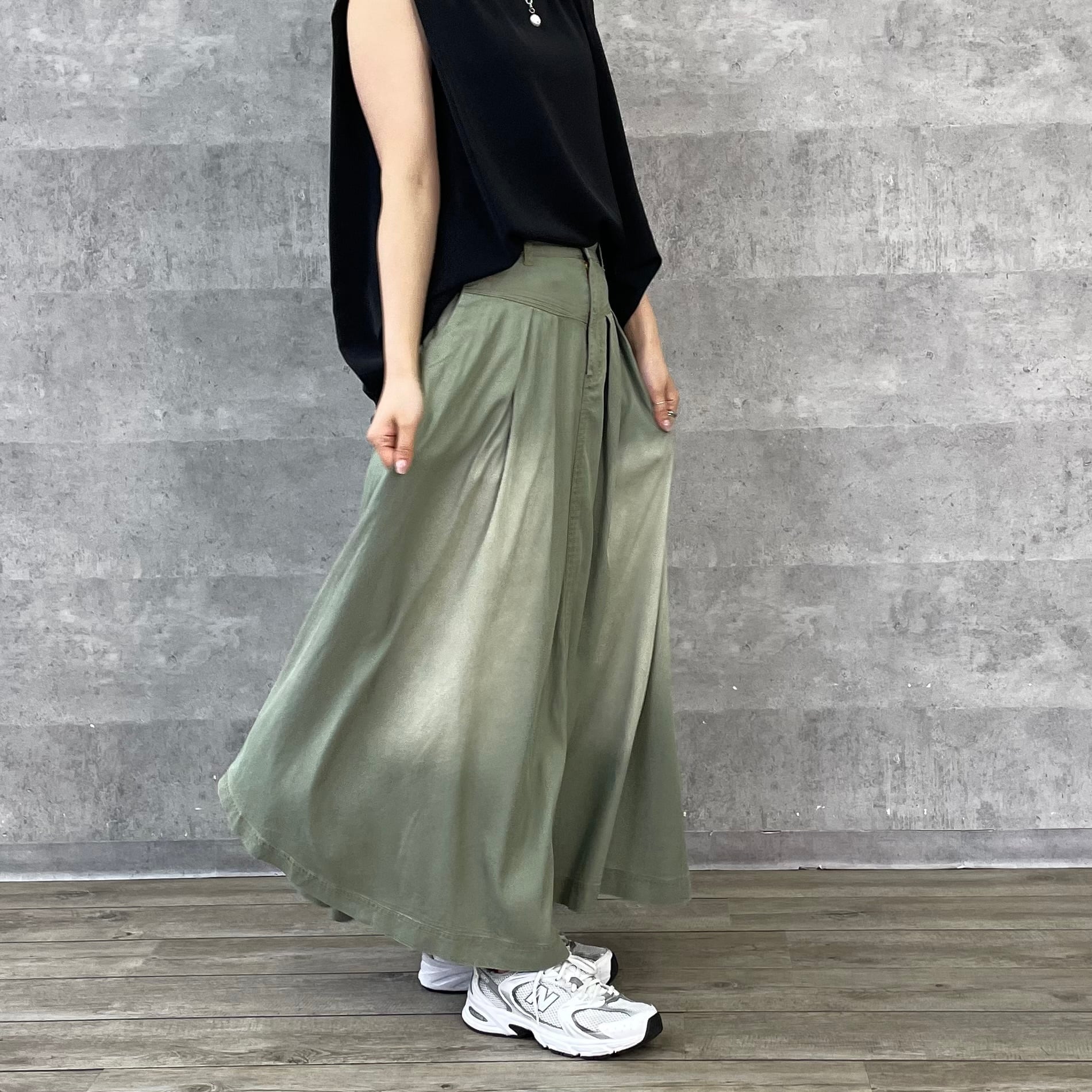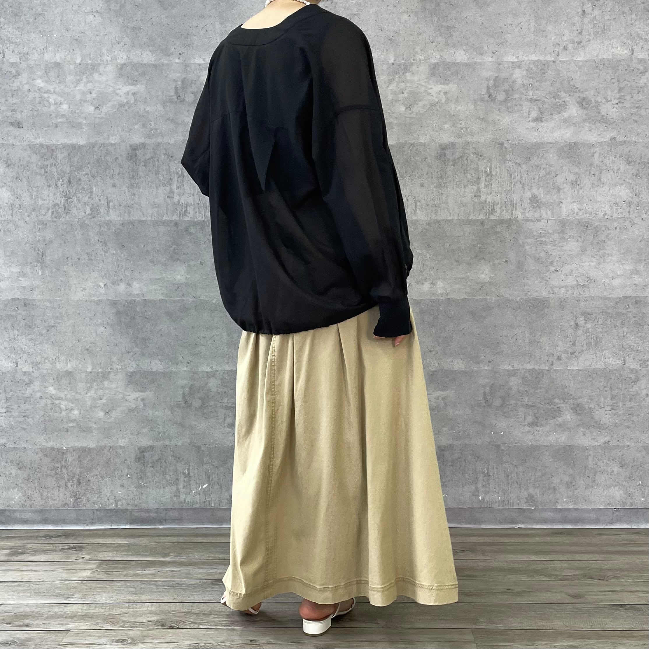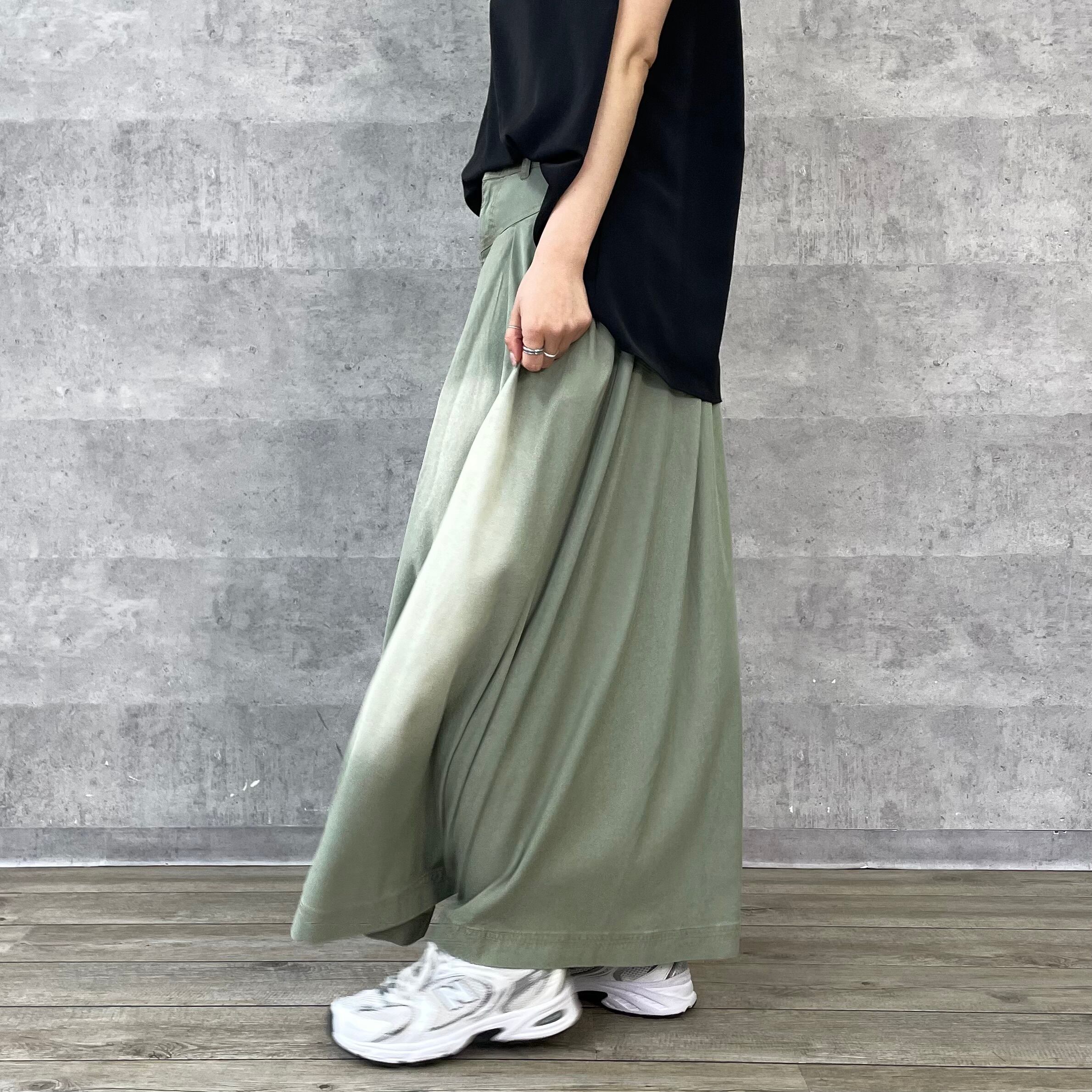 洗い加工でカジュアルダウンさせているのできれいすぎないロングスカートのコーディネートにぴったりです