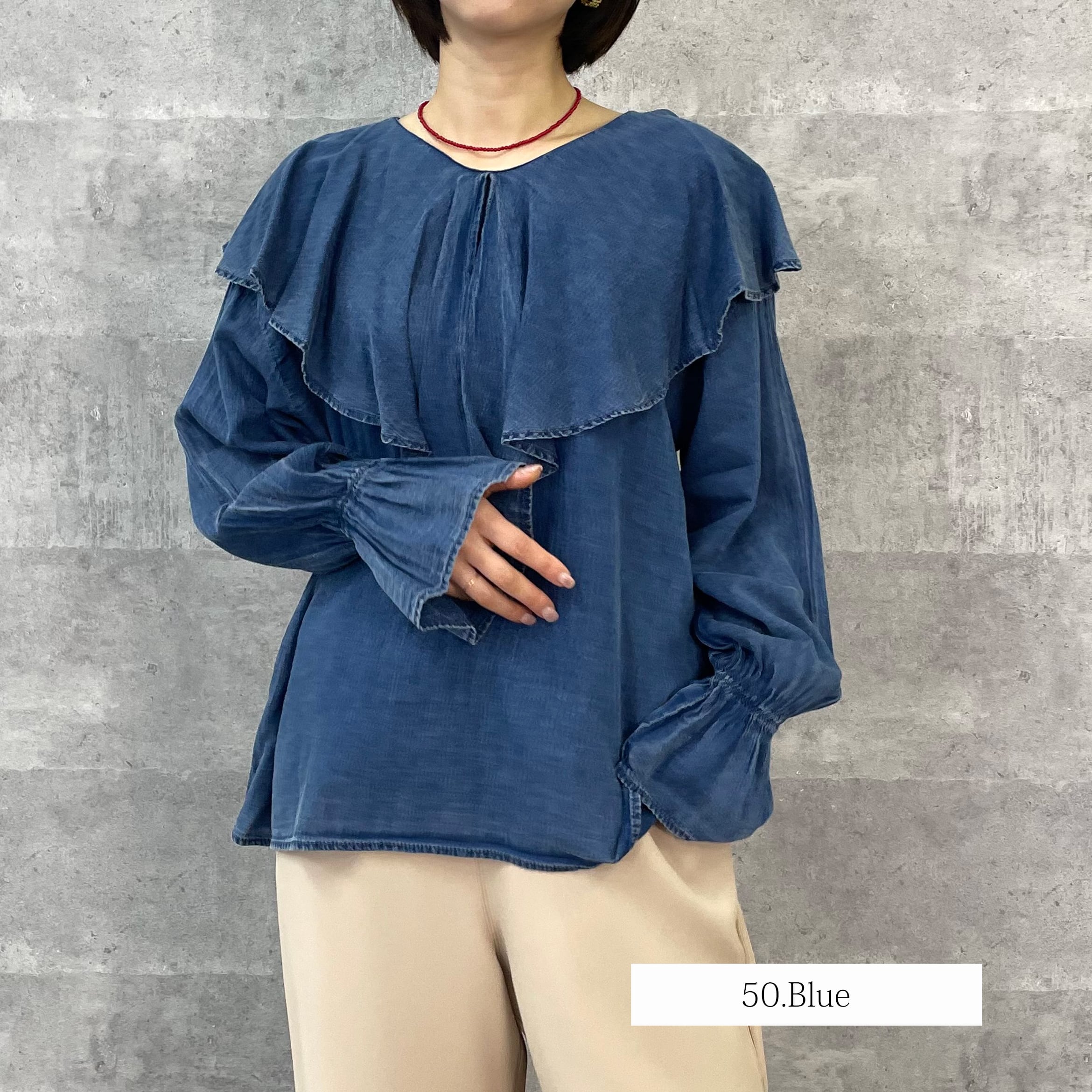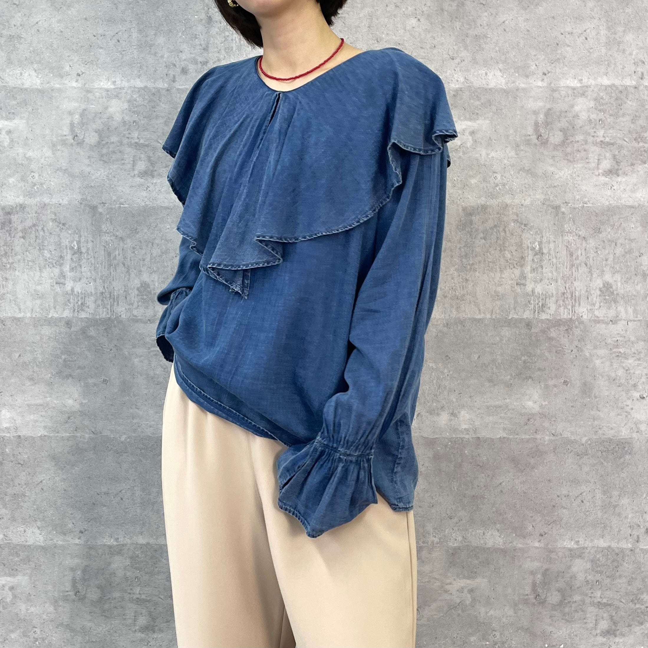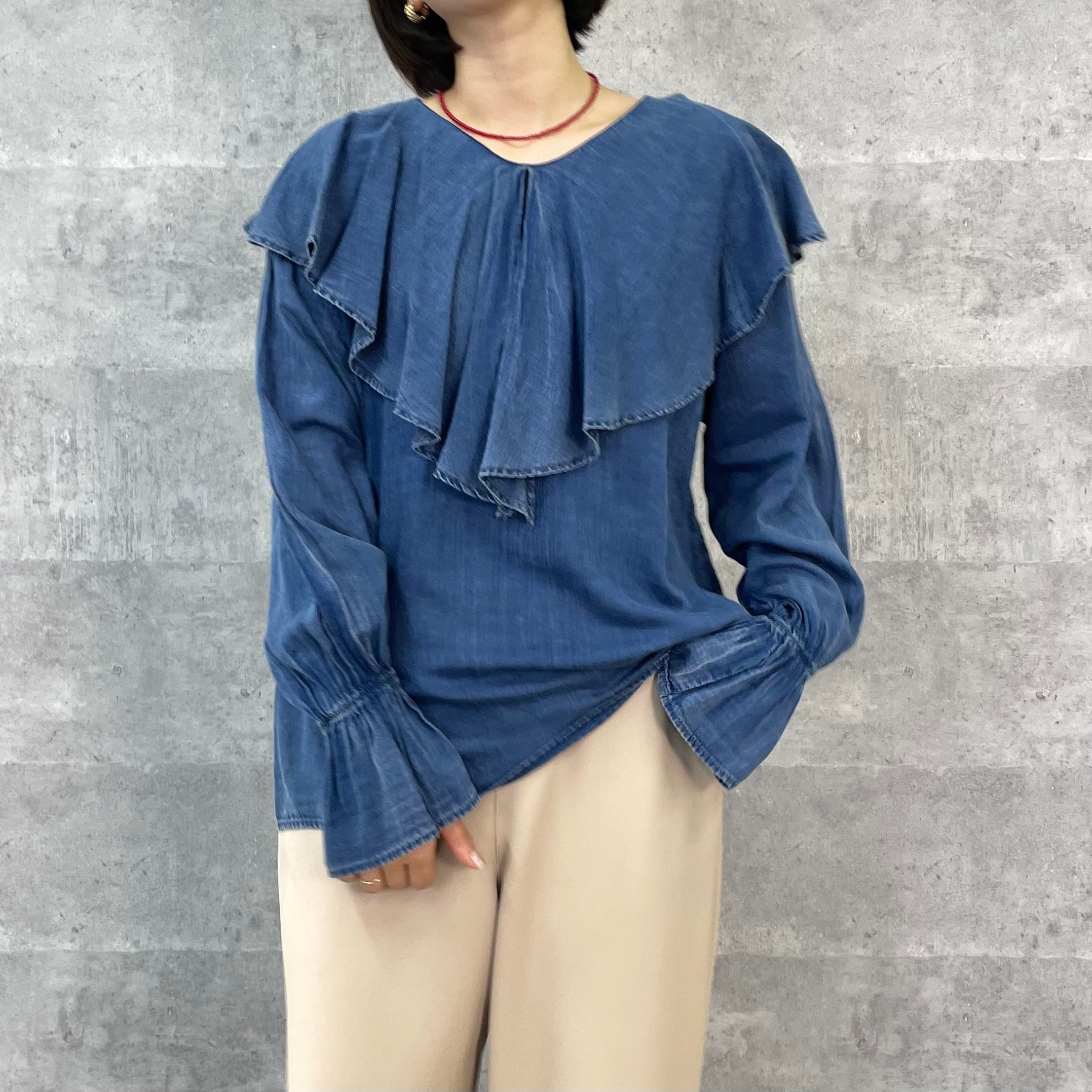 シアーデニムラッフルブラウス(NO.21261701)