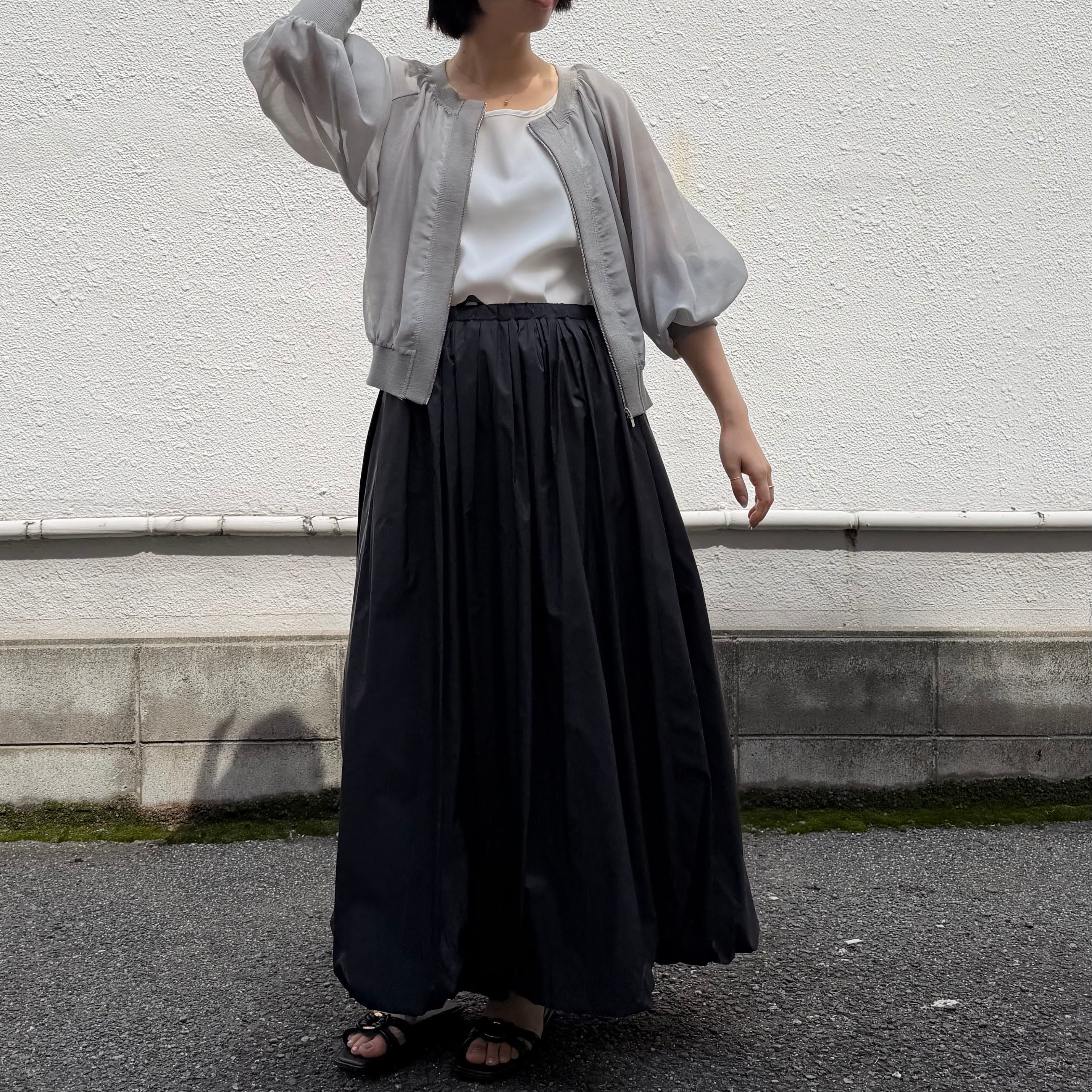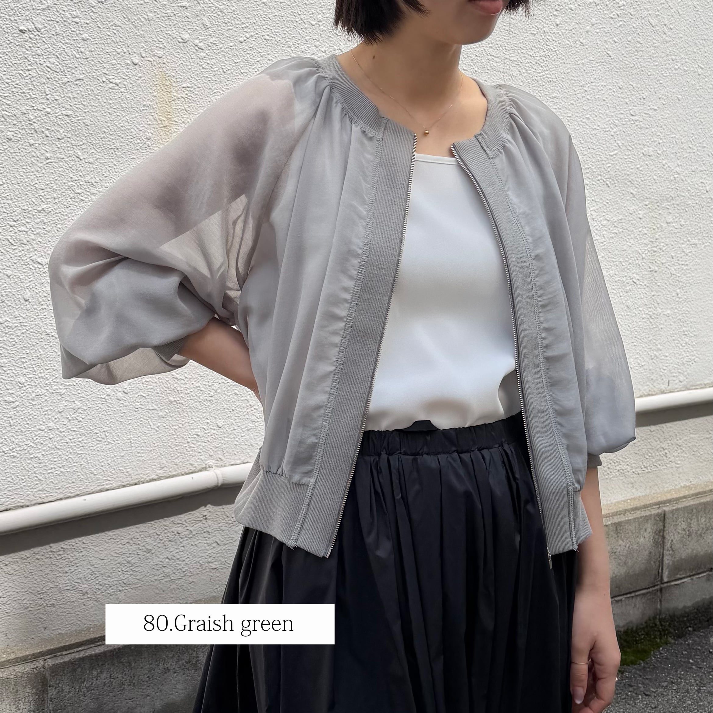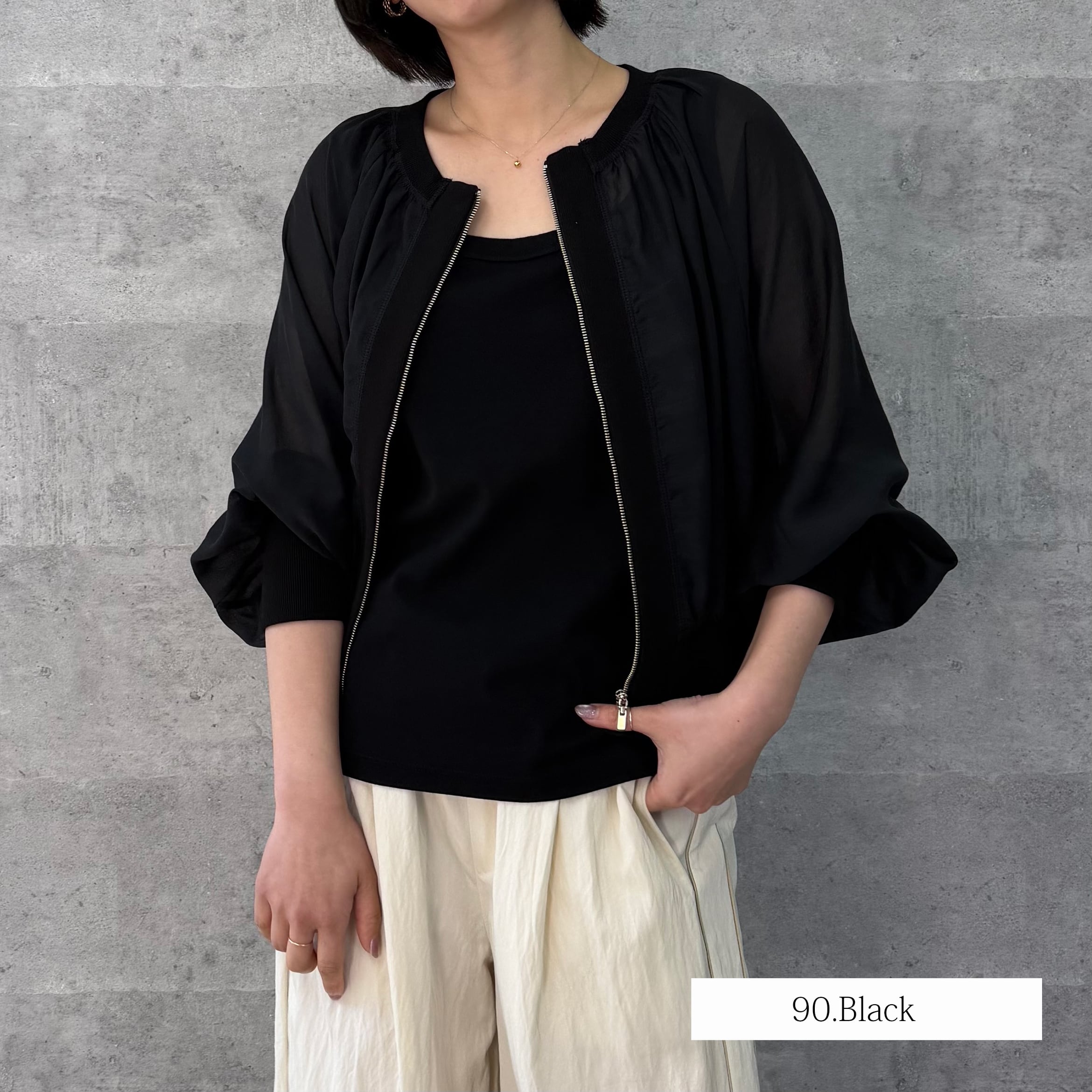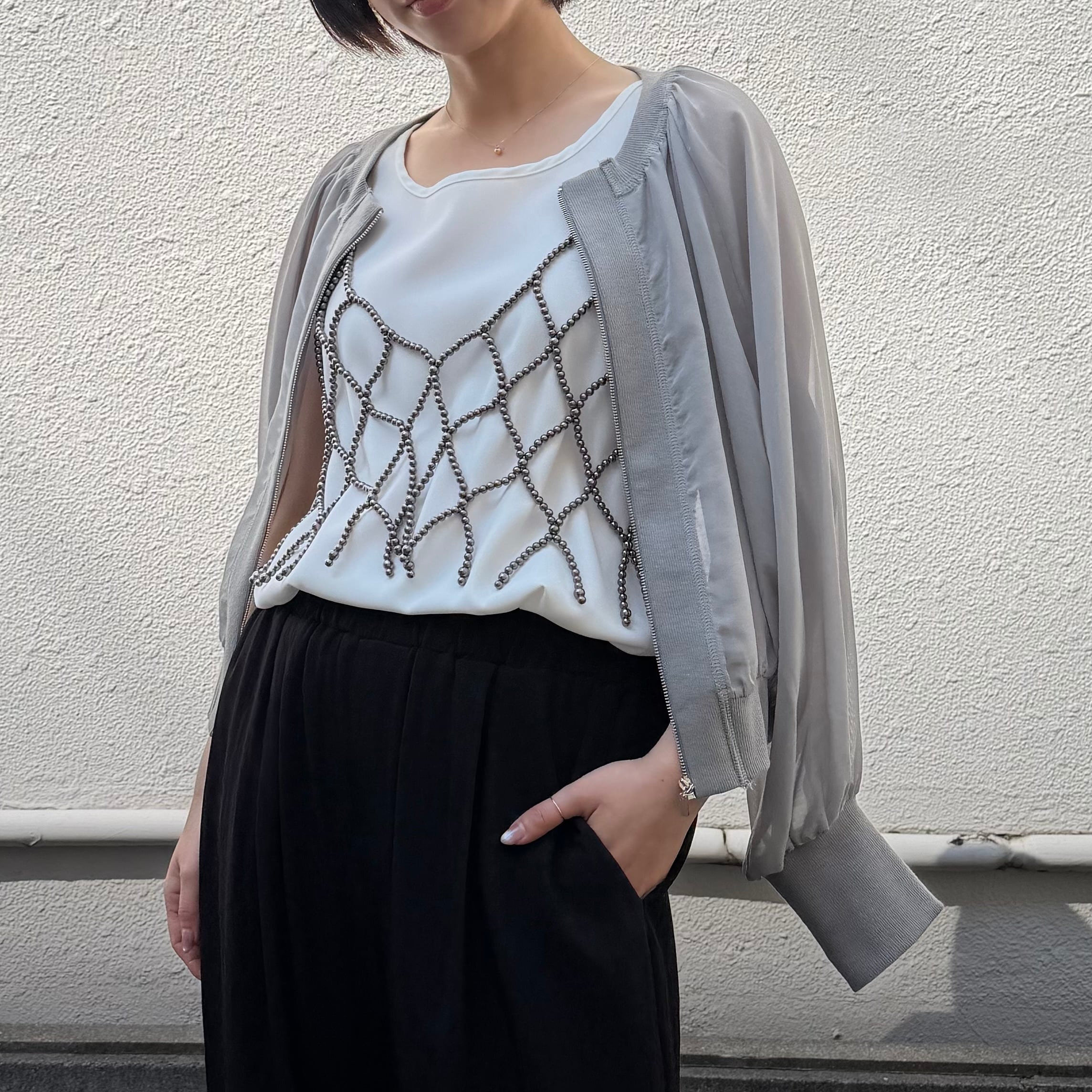 ショート丈でいろいろなボトムと相性が良く脚長効果も期待できます。