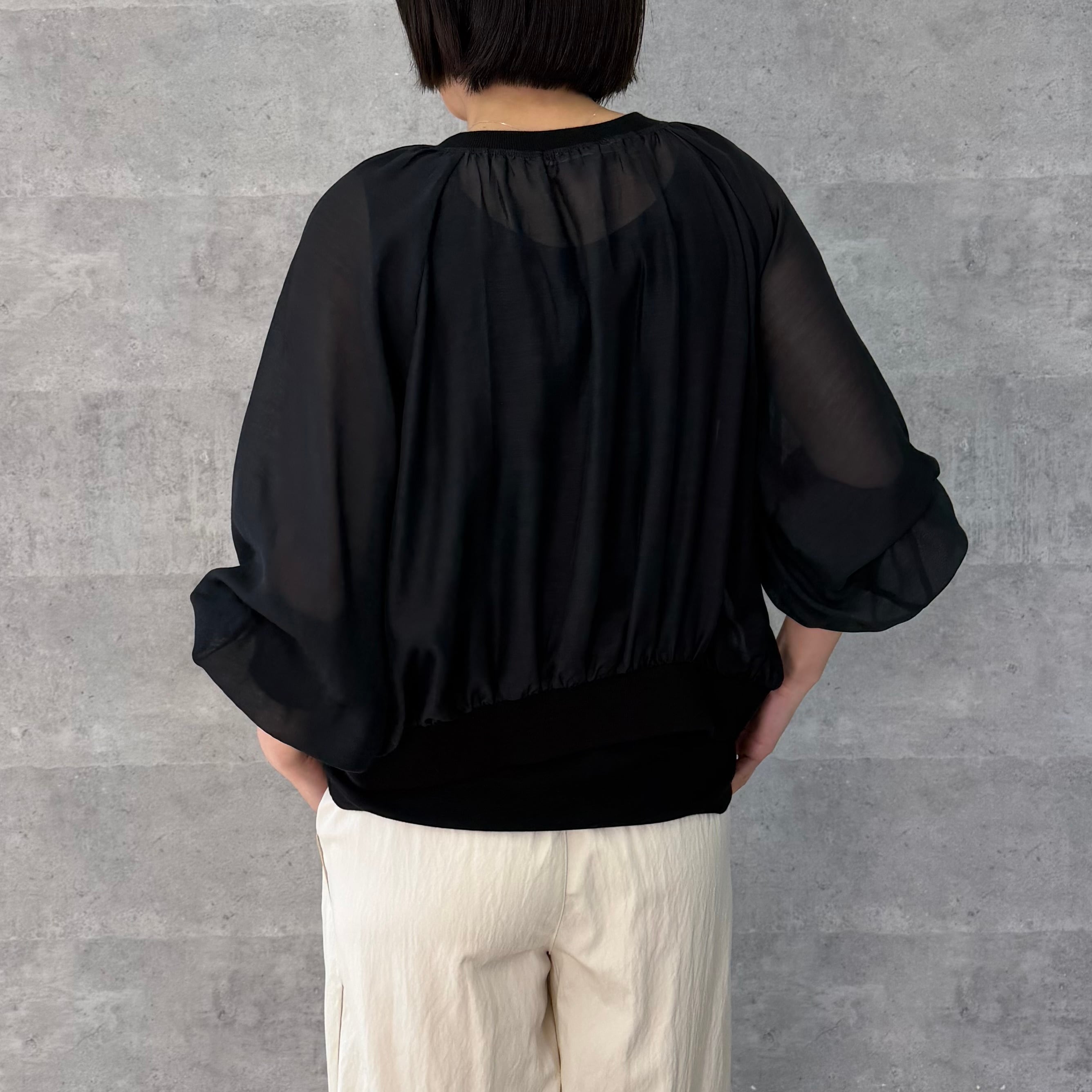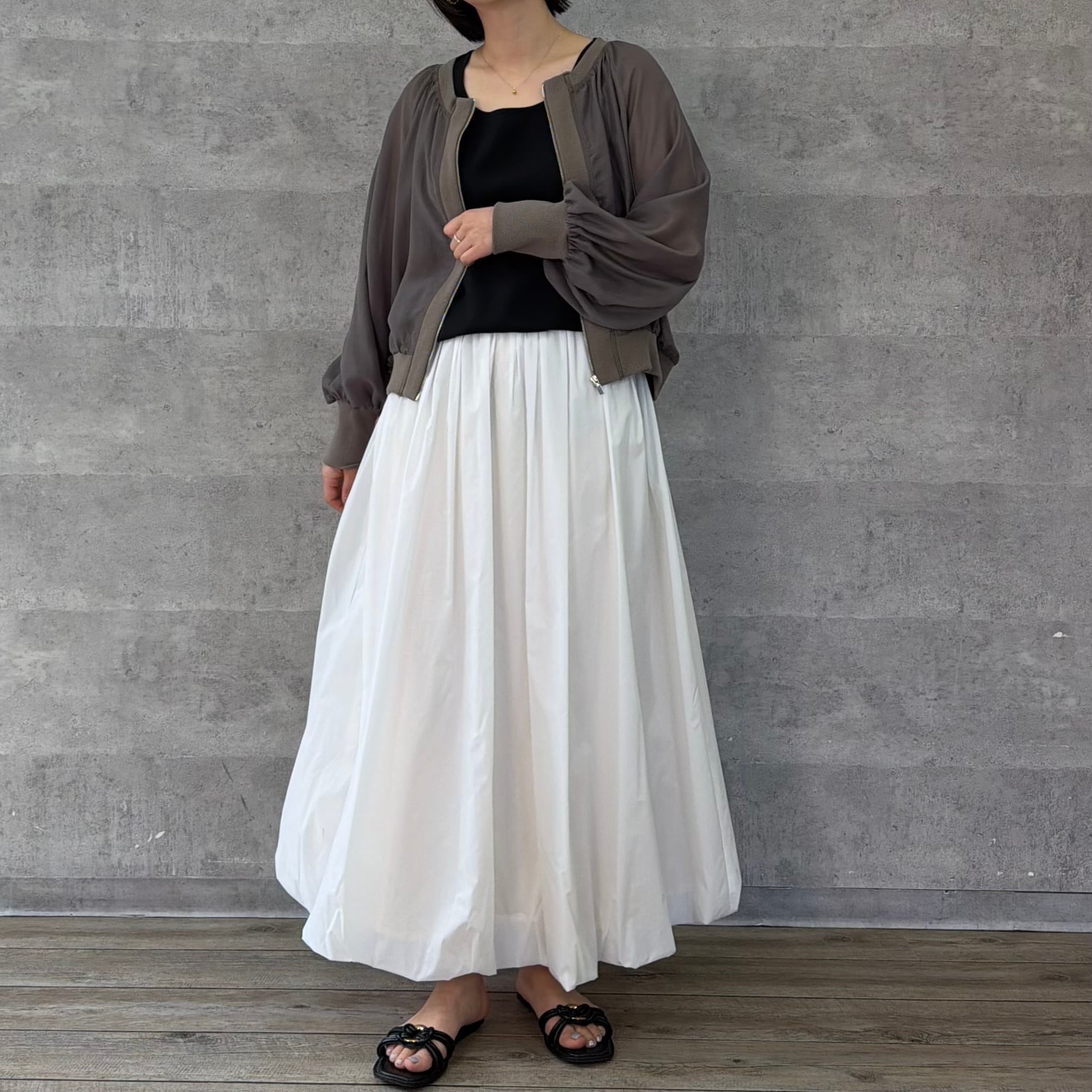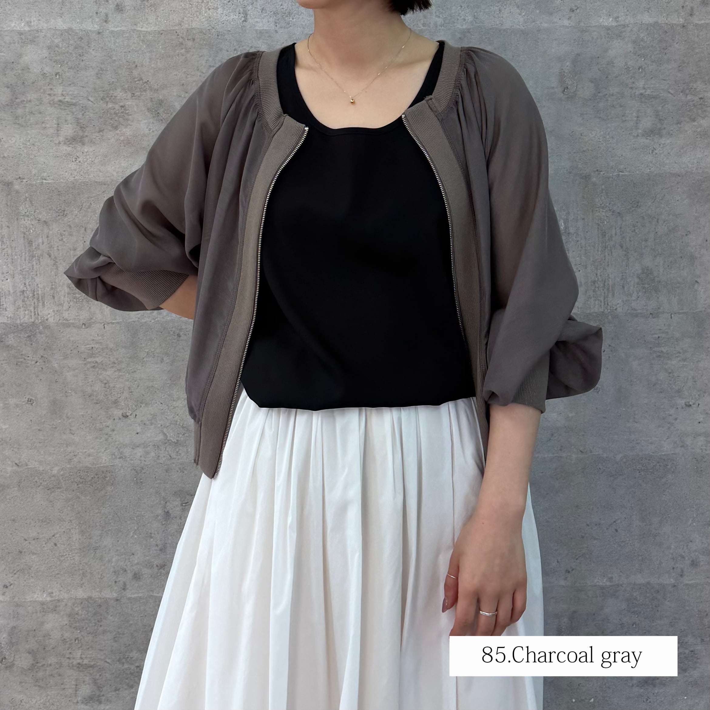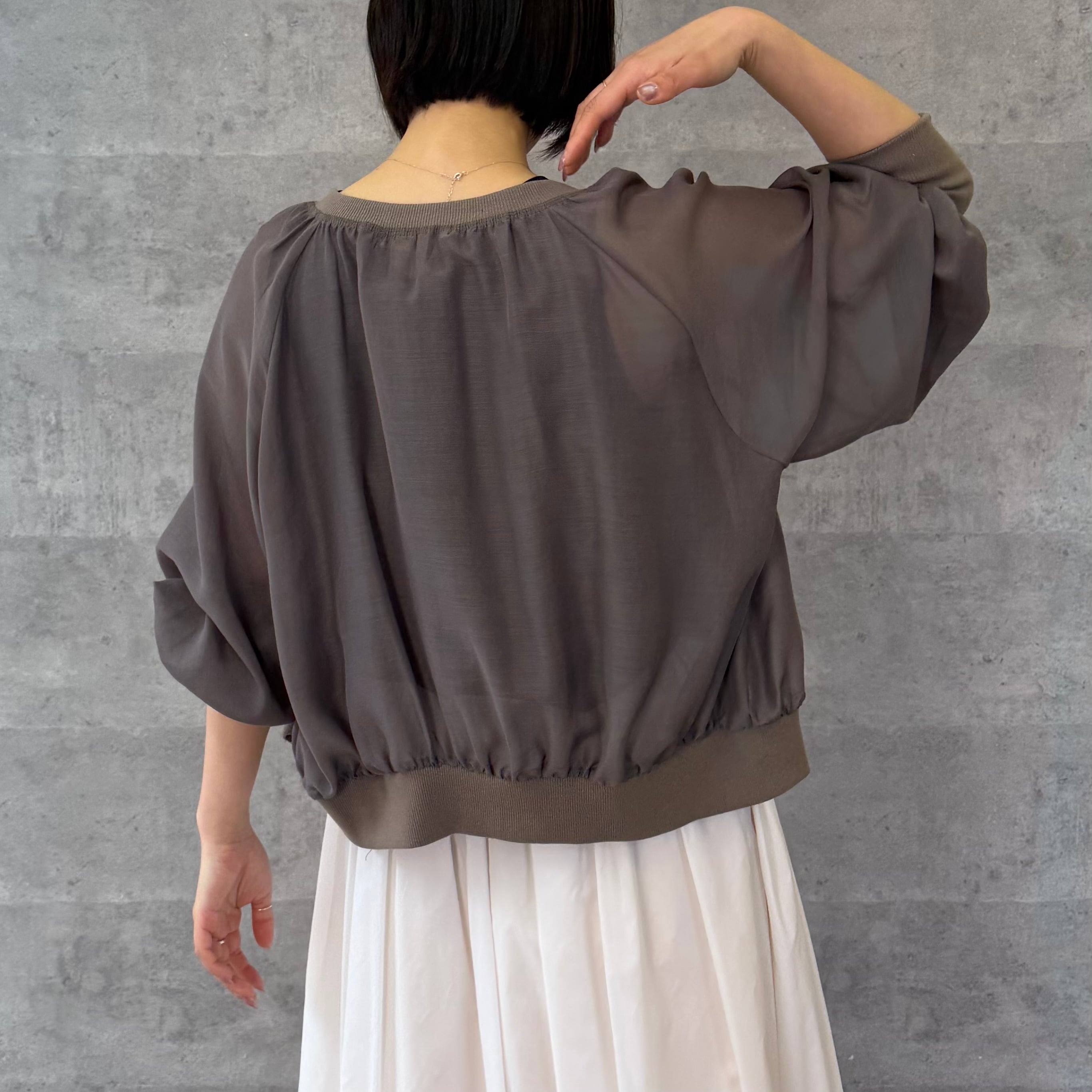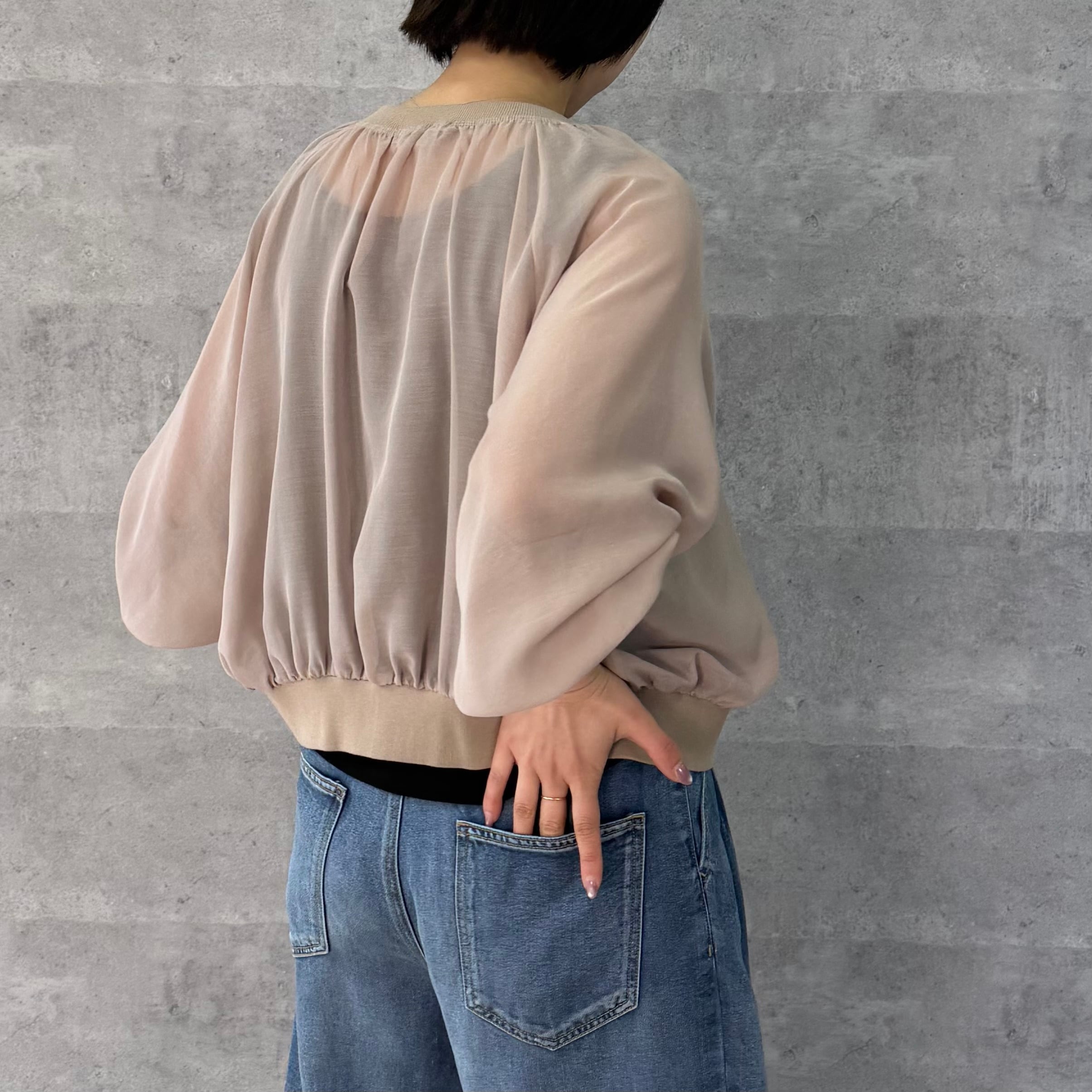 ショート丈でいろいろなボトムと相性が良く脚長効果も期待できます。