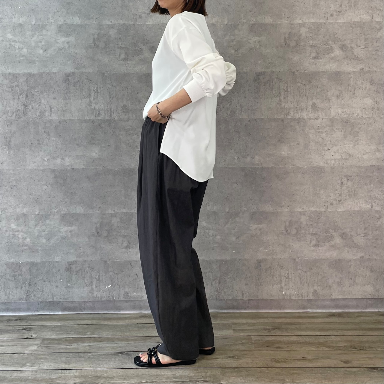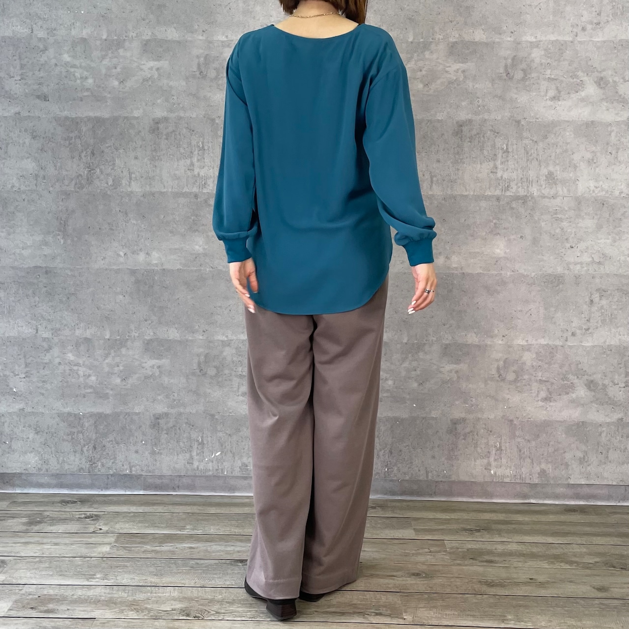 どんなスタイリングにもピタリとはまるデシンブラウス。